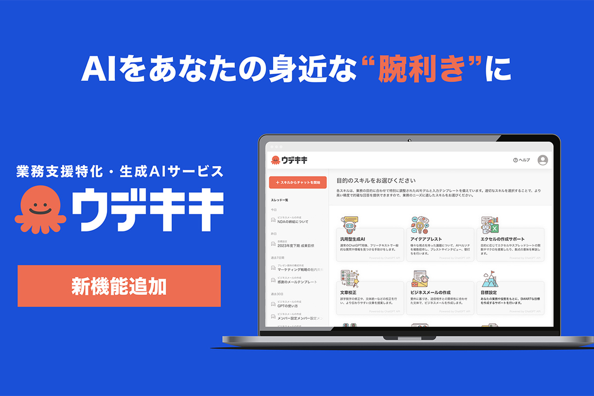 Gunosyは1月29日より、OpenAIを搭載した業務支援特化の生成AIサービス「ウデキキ」に、さまざまなビジネスシー…