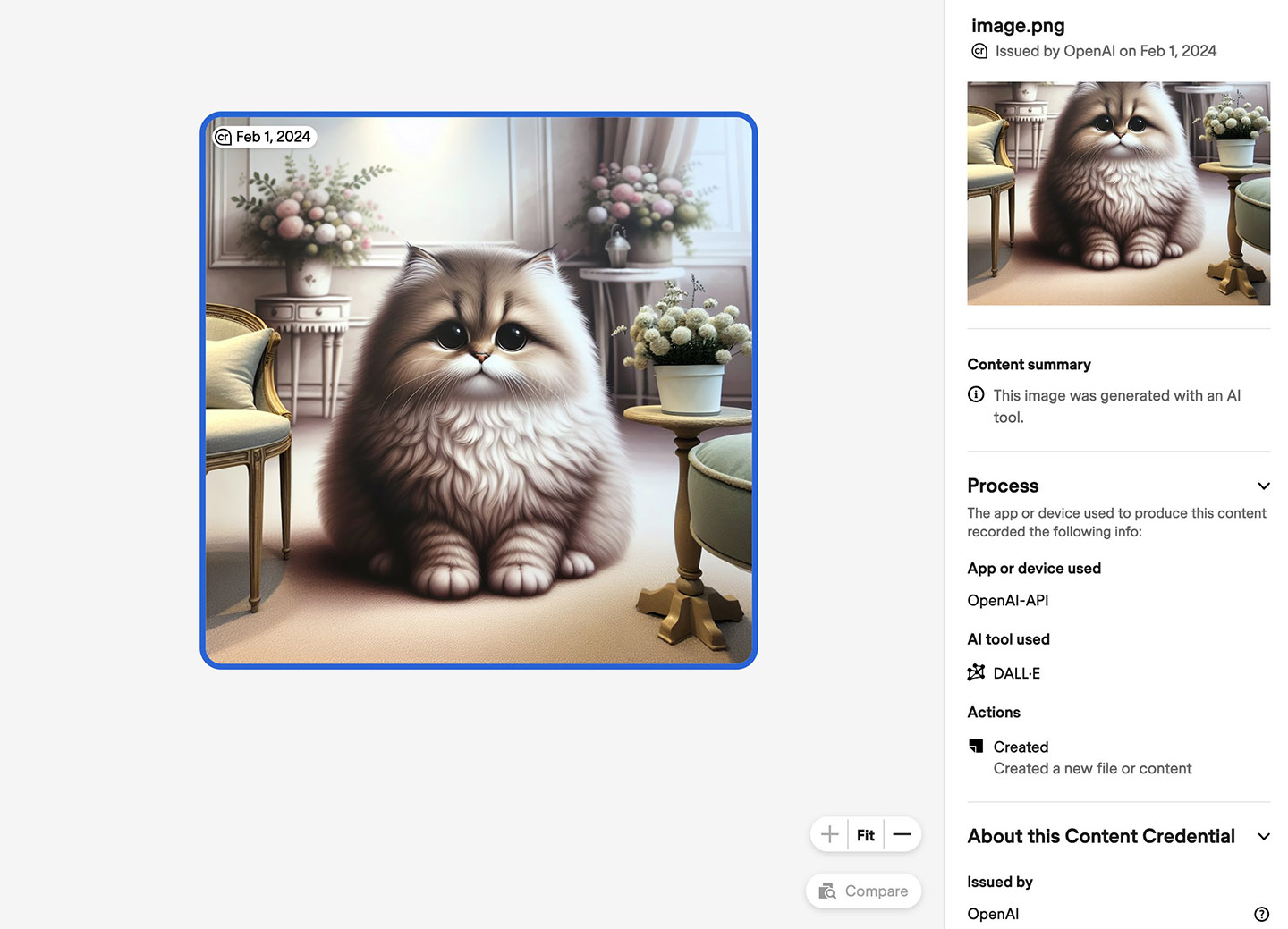 OpenAIは、ChatGPTとAPIで生成された画像に「C2PA」によるメタデータを追加し、OpenAIの製品によって生成されたことを示すことができるようにした。