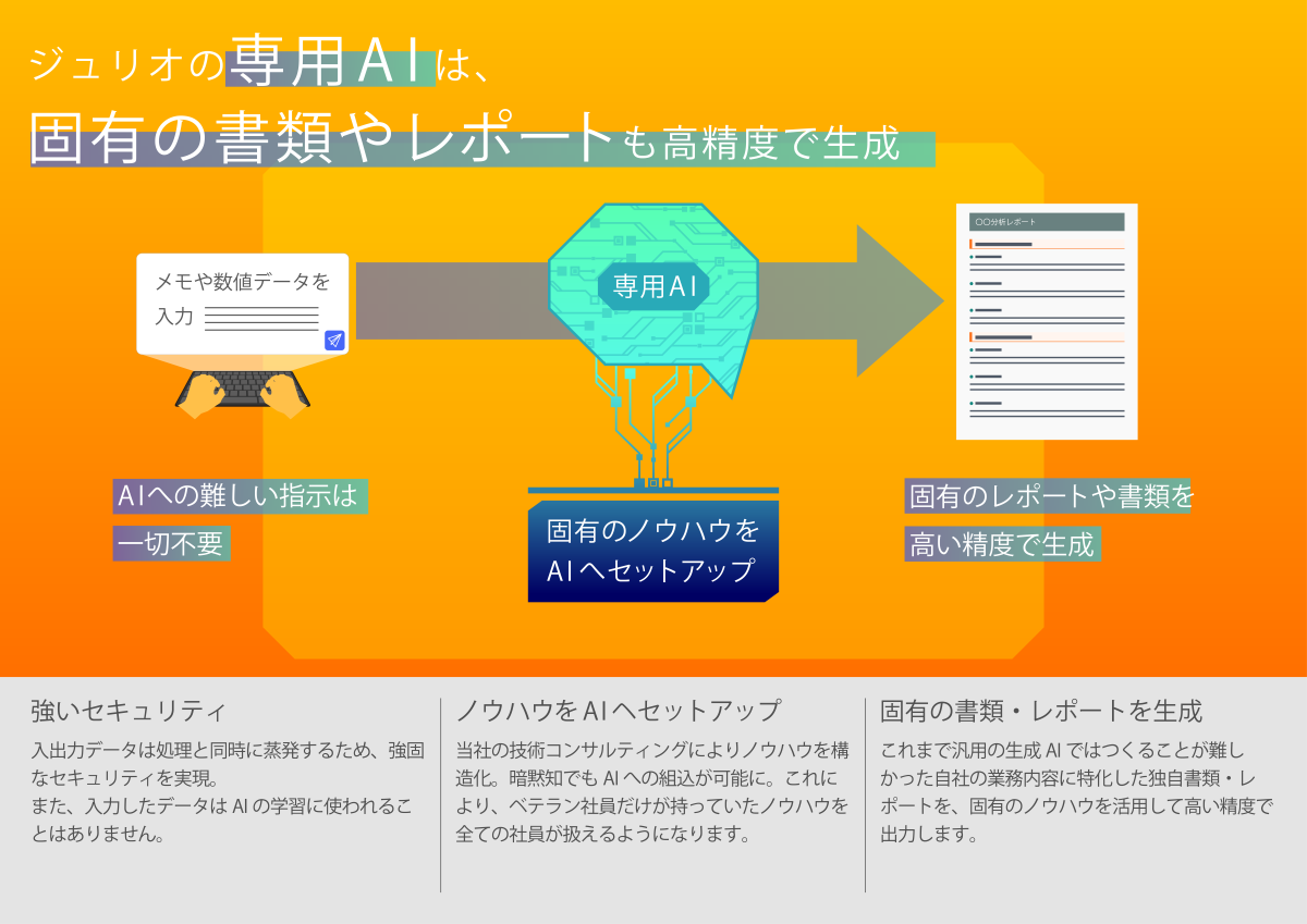 展示では、企業固有のノウハウをAIに組み込む専用AI開発サービスや、財務技術と生成AIの融合による財務分析や経営分析などのレポート機能を備えた財務AIジュリエットが紹介される予定だ。