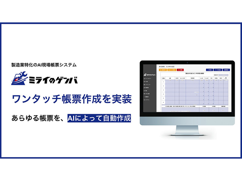 ミライのゲンバは、9月20日に製造現場特化のAI電子帳票システム『ミライのゲンバ帳票』の新機能「ワンタッチ帳票作成」をリ…
