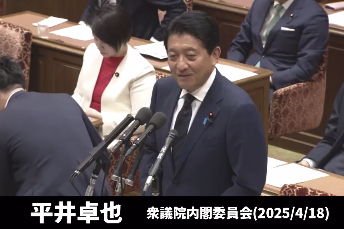 平井卓也衆議院議員が4月18日に衆議院内閣委員会で「AI推進法案」について質問する様子を自身のYouTubeチャンネルに公開しました。