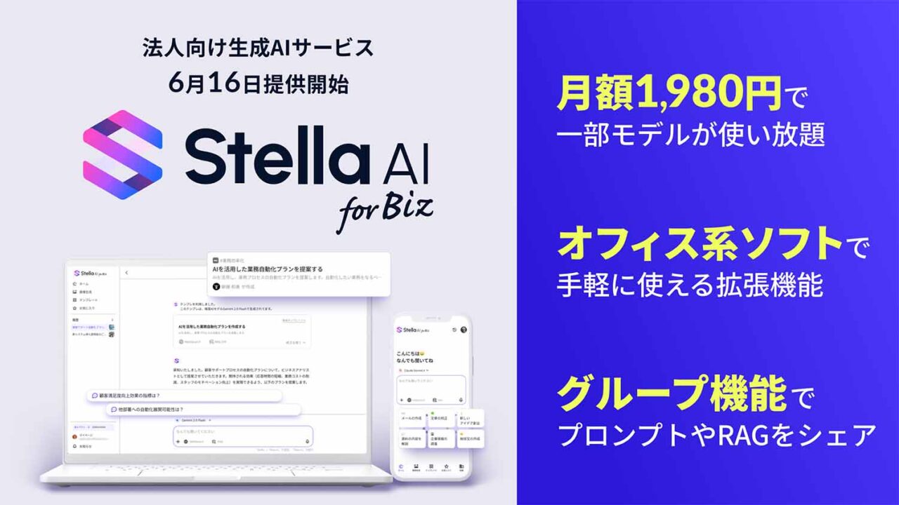 SUPERNOVAは、法人向けに月額1,980円(税別)で提供するAI生成サービス「Stella AI for Biz」を開始しました。