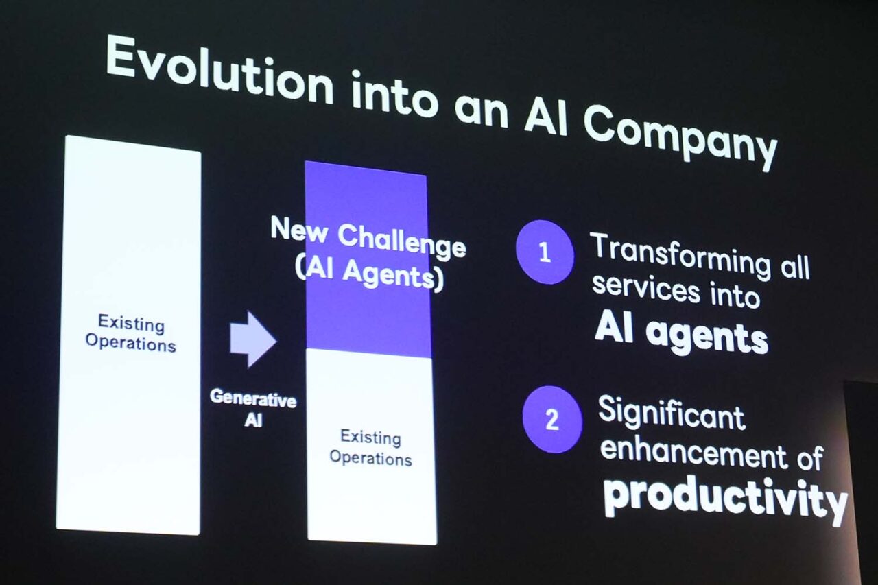 基調講演では、新たなプライベートクラウド「Flava」を紹介し、全てのサービスをAIエージェント化する方針を明らかにしました。