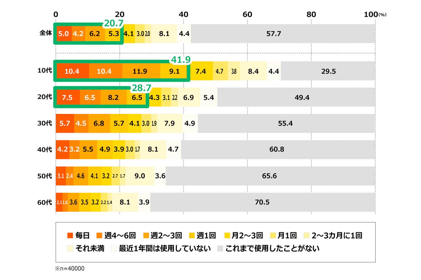 電通が実施した調査によると、対話型AIを週1回以上使用する人は20.7%で、特に10代では41.9%と高い割合を示しています。