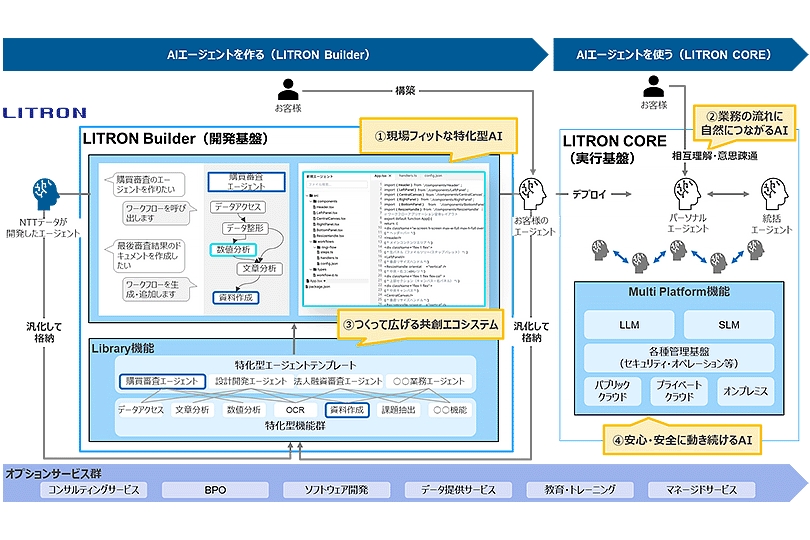 NTTデータは、企業が自社業務に最適なAIエージェントを簡単に開発できる基盤「LITRON Builder」を2026年4月に提供開始します。