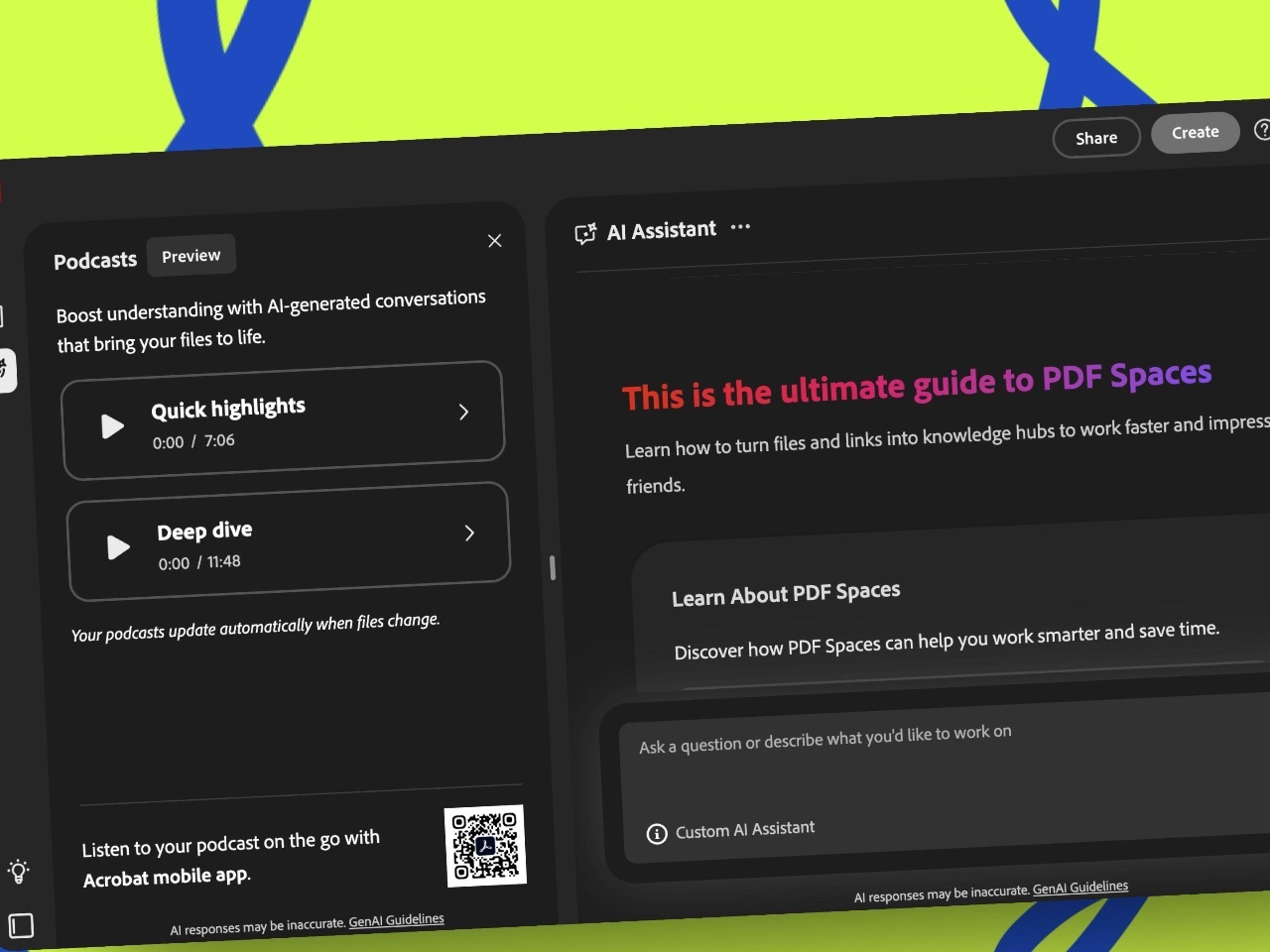 共同作業を促進する「PDF Spaces」も導入され、複数のファイルを集約し、他者と協力して作業できます。