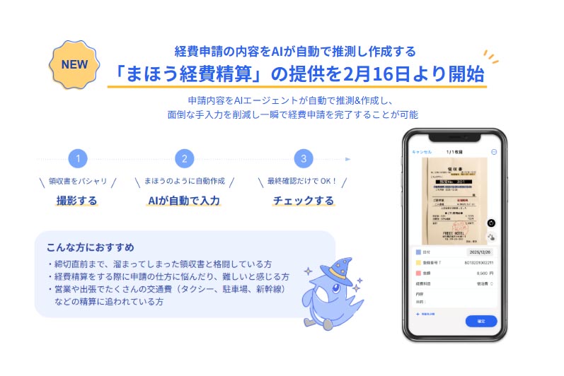 freeeは、経費申請をAIが支援する「まほう経費精算」を2023年2月16日から提供開始しました。