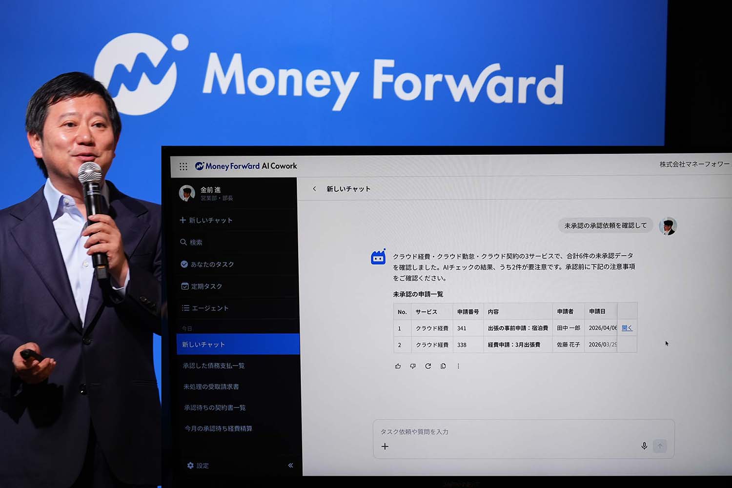 マネーフォワードは、AI戦略発表会「Money Forward AI Vision 2026」を開催し、新たにバックオフィス向けAIエージェント「AI Cowork」を発表しました。