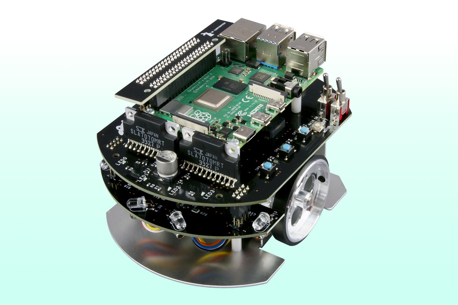 Raspberry Pi Mouse V3は、Raspberry Piを使用した小型移動プラットフォームロボットであり、自動運転技術の基礎開発などに利用されている。