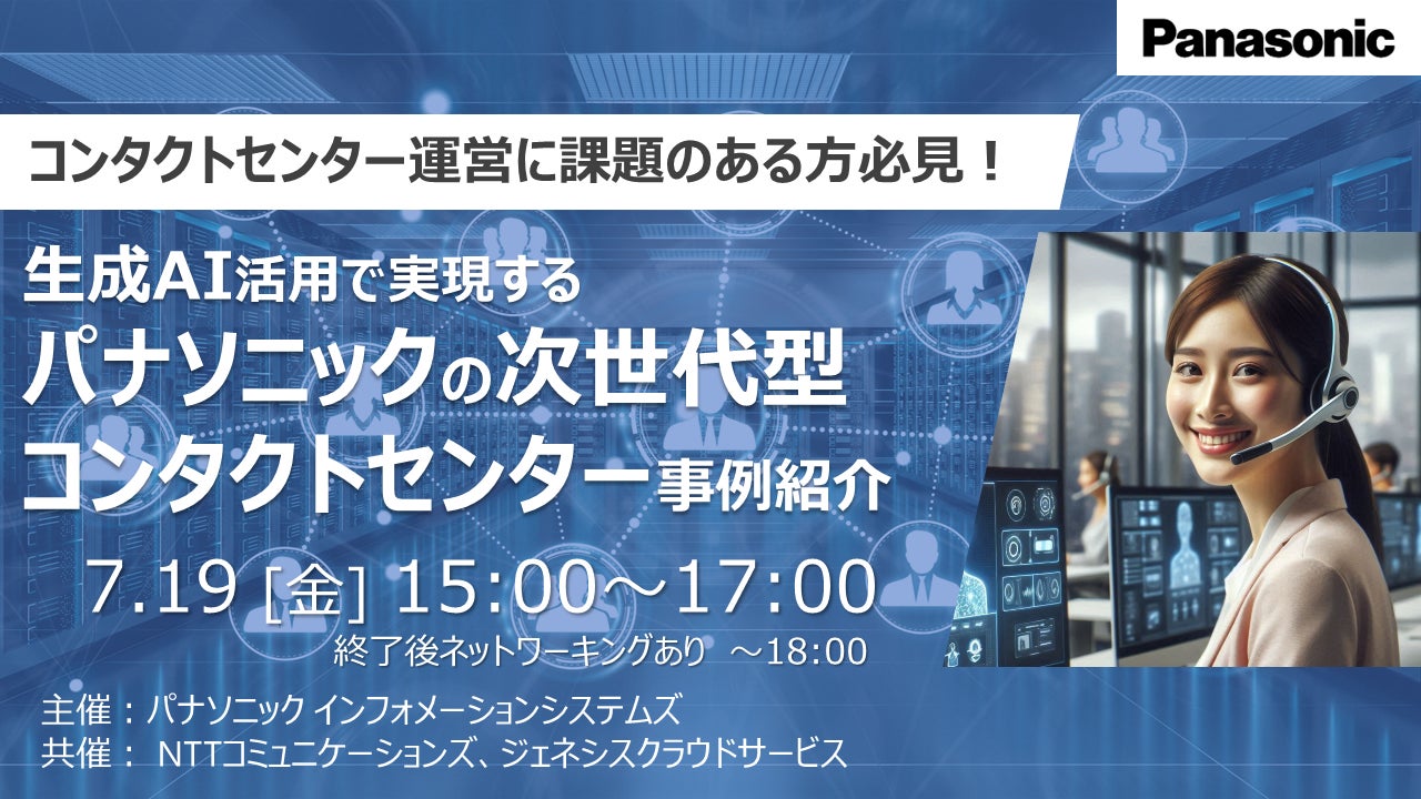 パナソニックが開催するセミナー「生成AI活用で実現するパナソニックの次世代型コンタクトセンター事例紹介」の概要です。