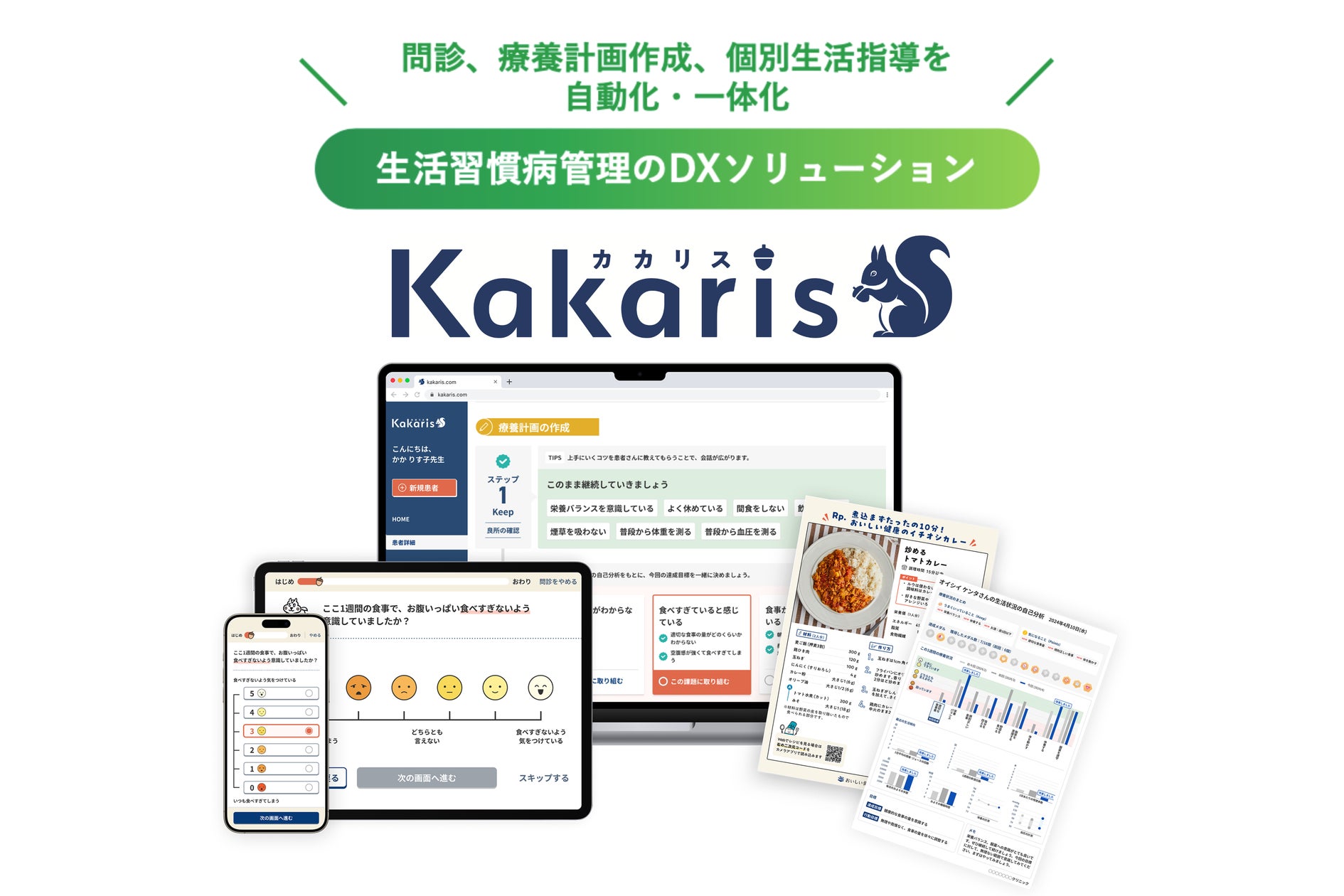 医療機関における生活習慣病管理の推進が求められる中、Kakarisは患者のニーズに寄り添った療養管理を効率的に実現し、医療スタッフの業務をサポートします。