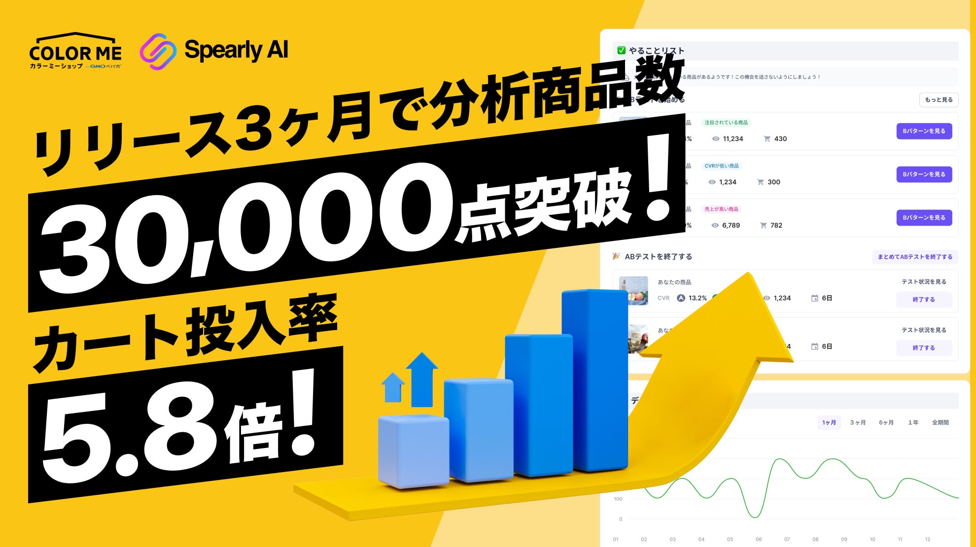 ECサイト改善支援アプリ「AI商品改善・A/Bテスト」がリリース3ヶ月で分析商品数3万点を突破しました。