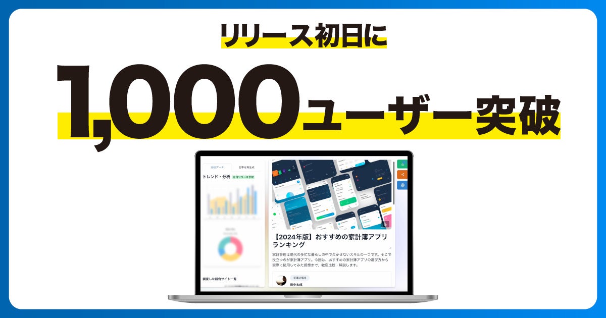 東京の雨という会社が開発したAIライティングツール「AI-SEO」が、リリース初日に1,000人のユーザーを獲得しました。
