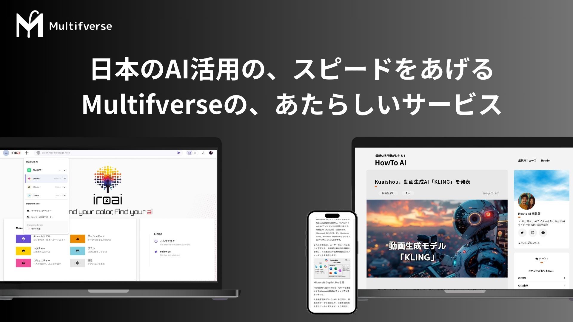 株式会社Multiverseは、複数のAIツールが使える新サービス『iroai』のβ版をリリースし、先行体験ユーザーを100名募集しています。