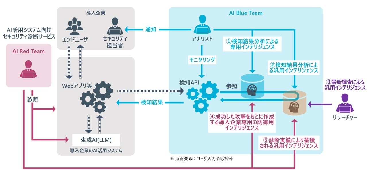 このサービスは、システム固有の脆弱性を洗い出した後、大規模言語モデル(LLM)を活用したシステムのセキュリティ対策を継続的に行うことができます。