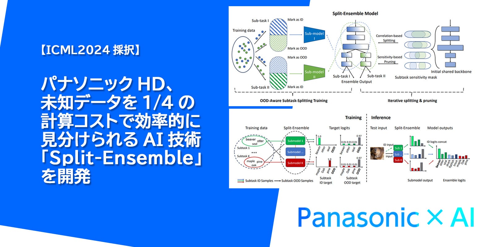 パナソニックHDは、カリフォルニア大学バークレー校、北京大学、カーネギーメロン大学の研究者と共同で、未知のデータを効率的に見分けるAI技術「Split-Ensemble」を開発しました。