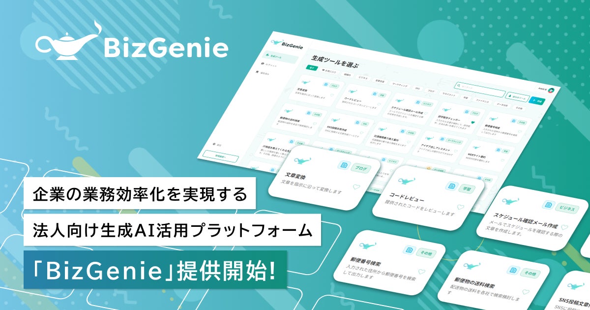株式会社VestOneは、7月30日より法人向け生成AI活用プラットフォーム「BizGenie」を提供開始しました。
