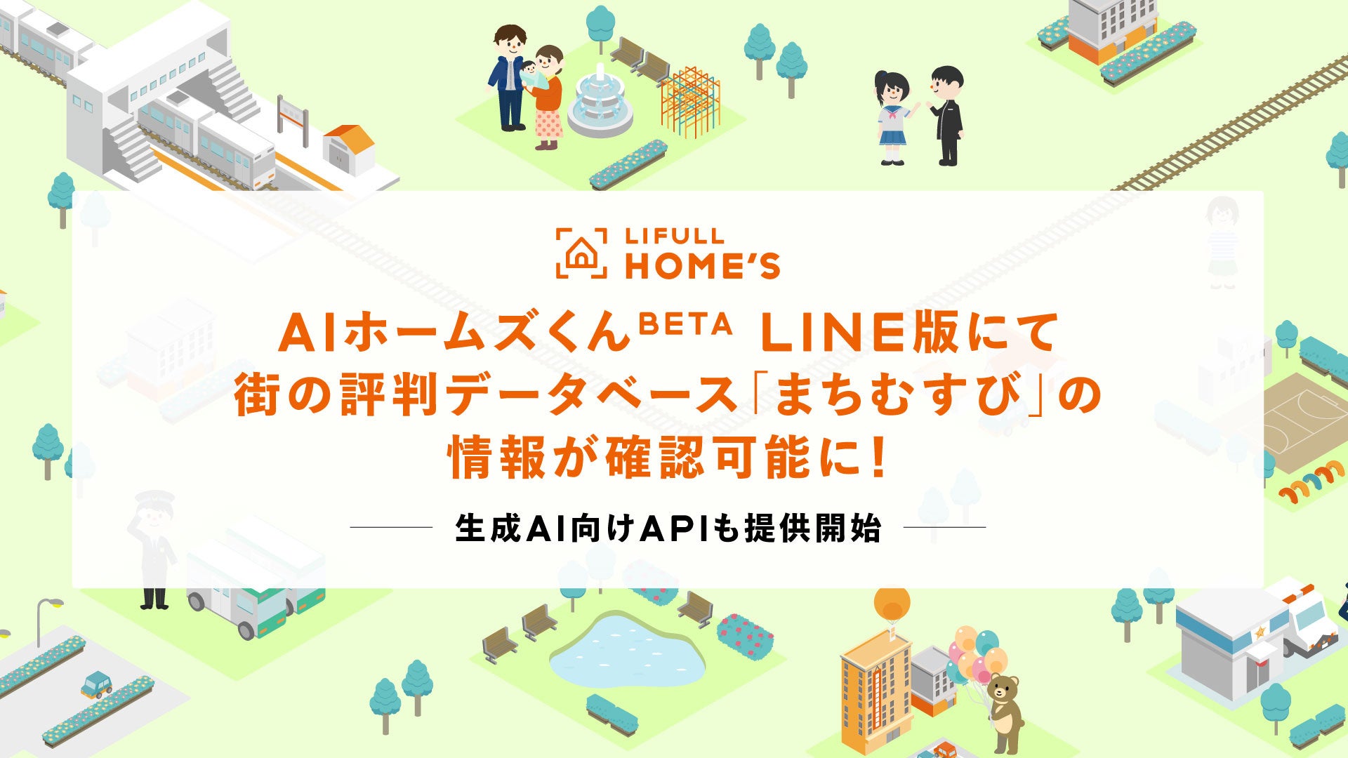 株式会社LIFULLは、住宅情報サービス「LIFULL HOME'S」の「AIホームズくんBETA LINE版」に、街の評判データベース「まちむすび」の情報を追加しました。