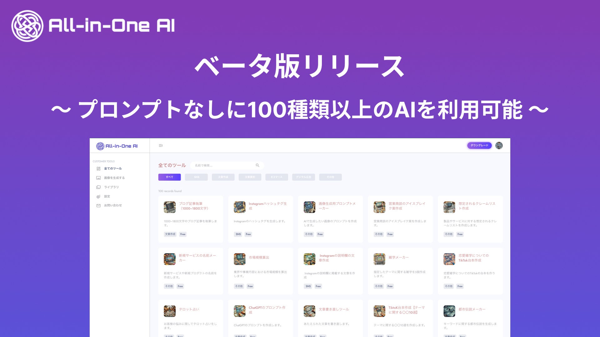 ブライティアーズは、100種類以上のAIツールを搭載した「All-in-One AI」のβ版をリリースしました。