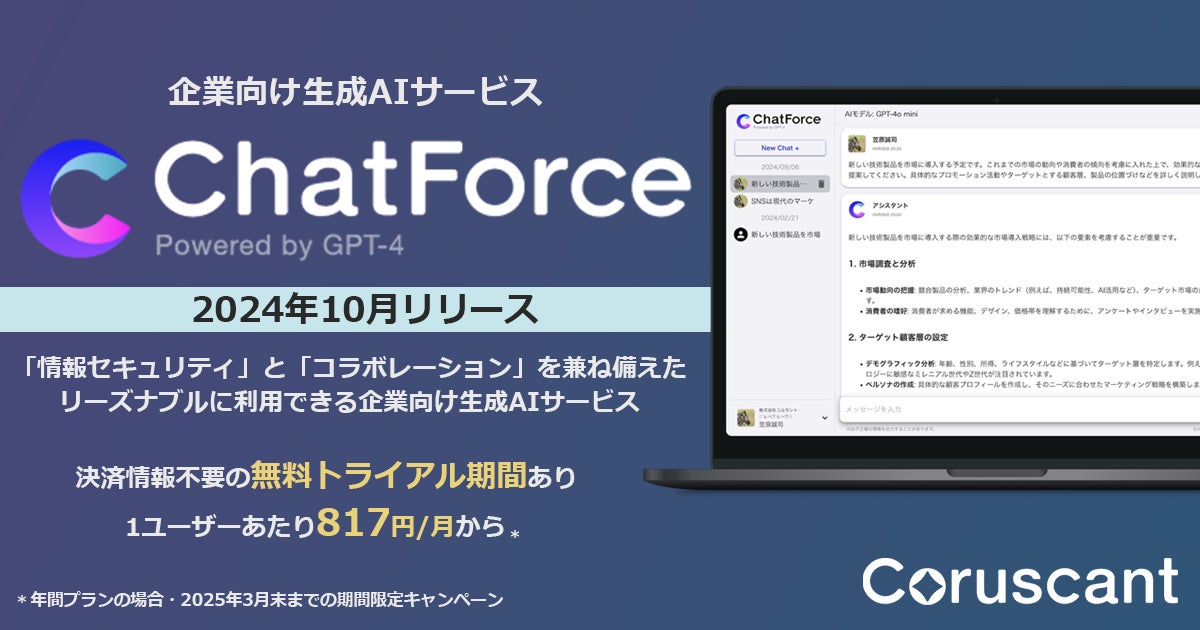 株式会社コルサントのプレスリリース(2024年10月11日 12時47分)企業向け生成AIサービス「ChatForce」…