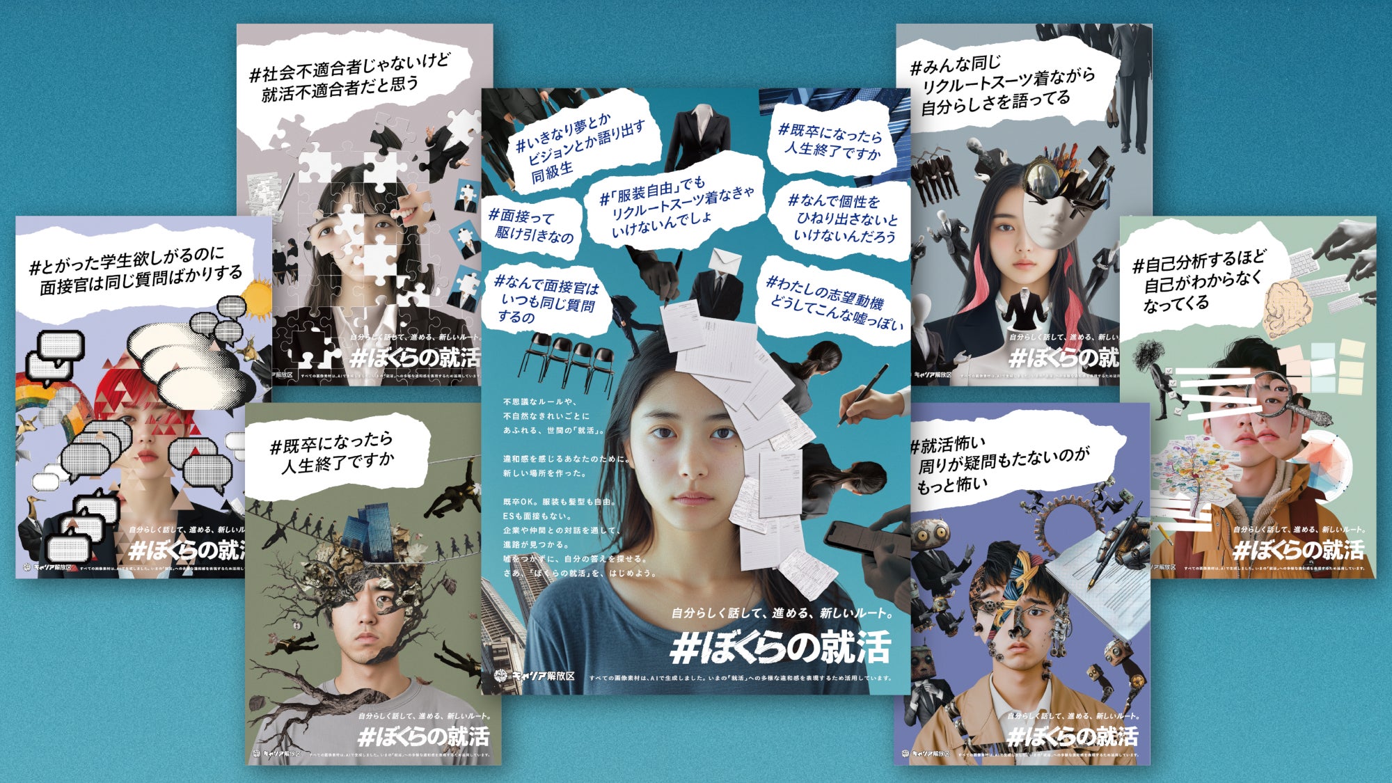 ポスターはすべてAI素材で制作されており、既存の就職活動の枠を超えた新しい視点を提供しています。