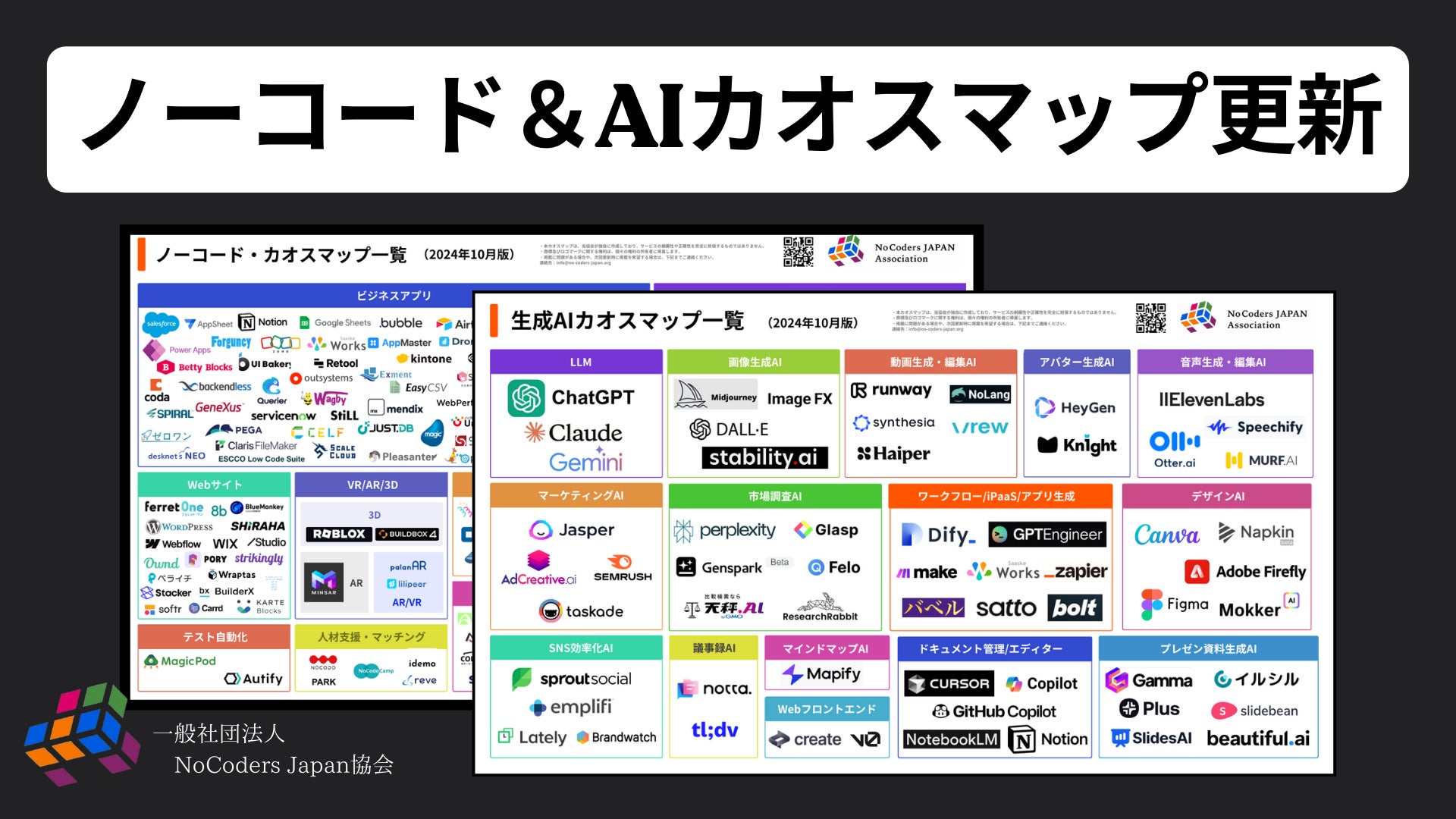 「ノーコード&AIカオスマップ更新【2024年10月版】」では、ノーコードとAIの最新トレンドやツールを整理したカオスマップの更新情報が紹介されています。