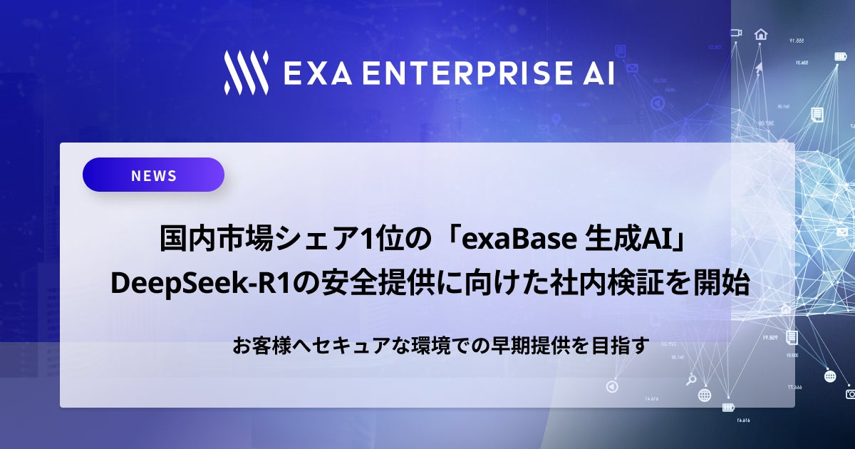 国内市場シェア1位を誇る「exaBase 生成AI」のDeepSeek-R1が、安全な提供を実現するための社内検証を開始しました。