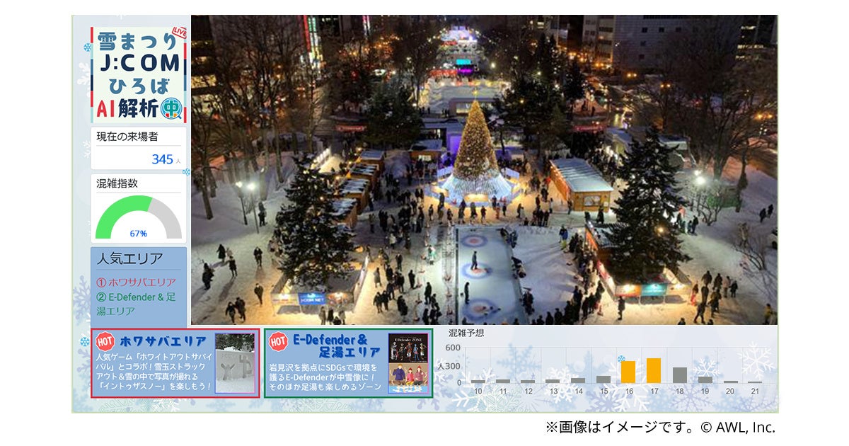 2025年のさっぽろ雪まつりにおいて、AWLが「J:COMひろば」でエッジAI映像解析技術を提供することが発表されました。