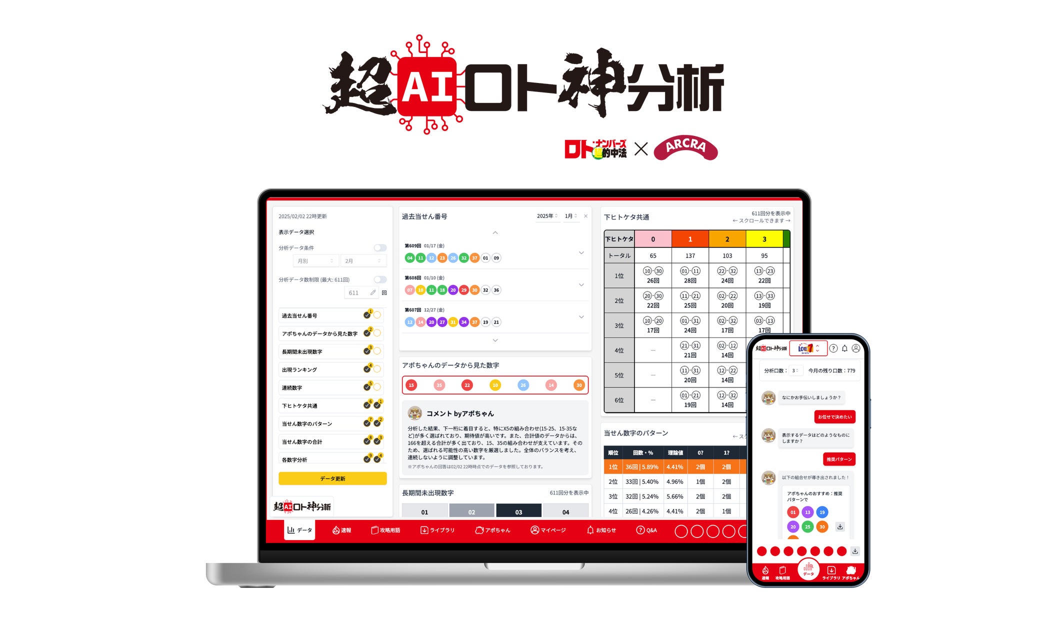 株式会社ARCRAのプレスリリース(2025年2月3日 13時00分)AI Chatbot アポちゃんを活用したロト分析…