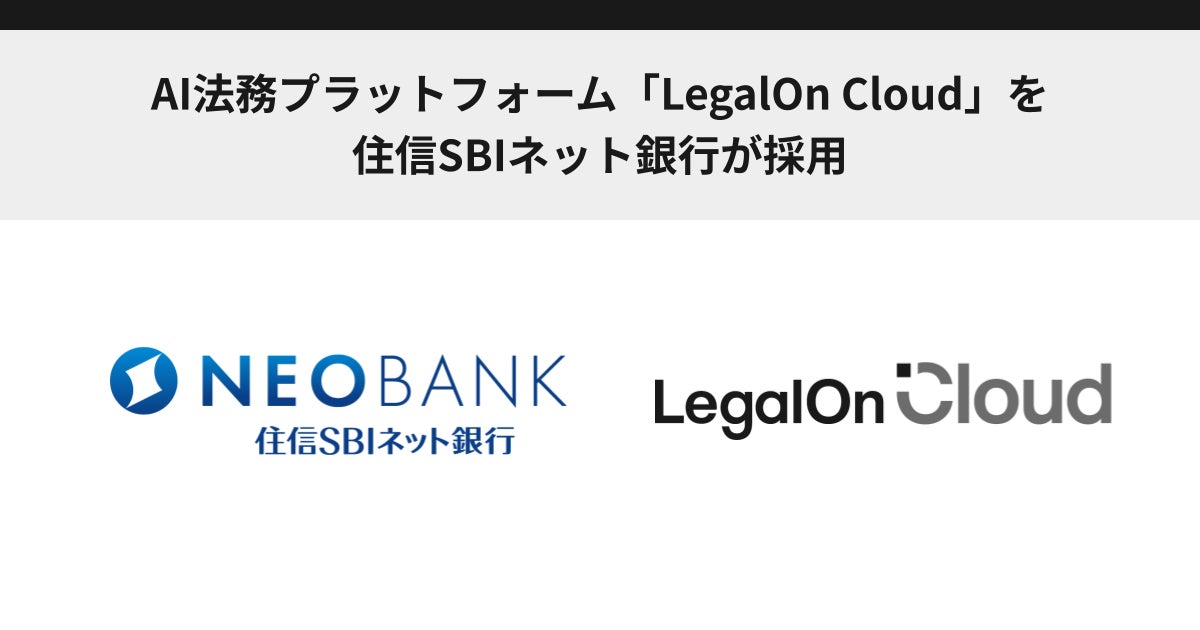 住信SBIネット銀行は、AI法務プラットフォーム「LegalOn Cloud」を採用しました。
