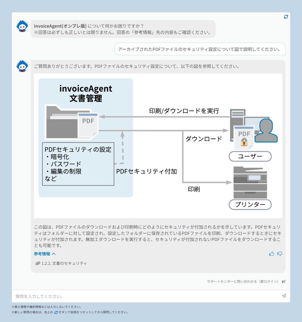 このAIアシスタントは、ユーザーが「invoiceAgent」をスムーズに利用できるようにサポートし、操作方法やトラブルシューティングに関する質問に即座に応答します。