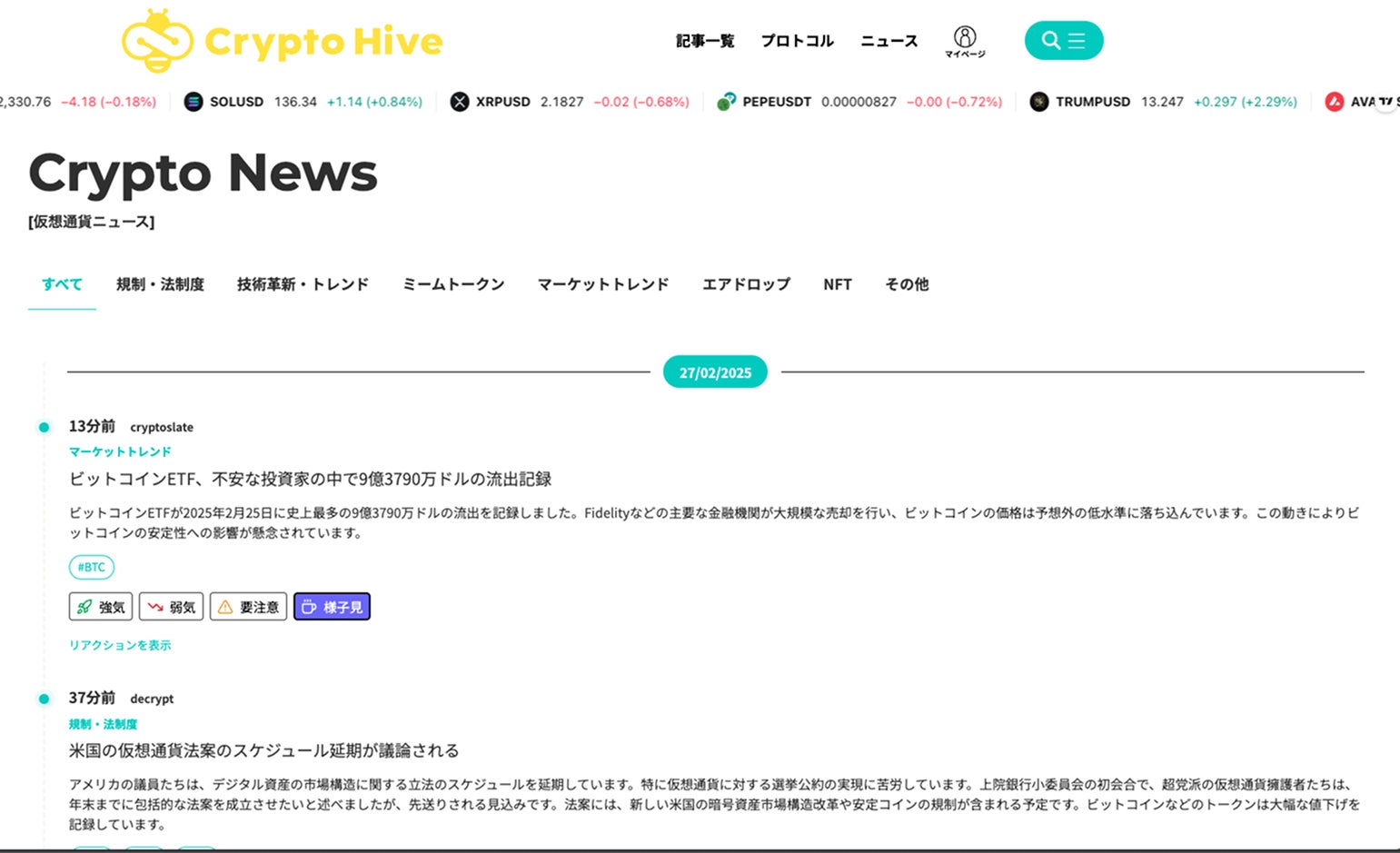 Web3メディア「CryptoHive」が新たに、暗号資産(仮想通貨)の最新ニュースを生成AIが要約・分析する機能を公開しました。