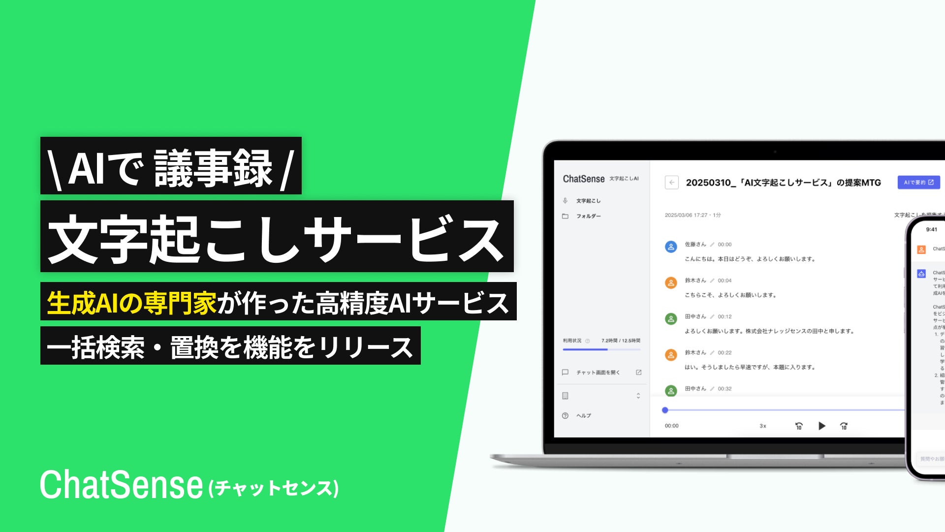 「ChatSense」という文字起こし生成AIサービスが、新たに検索・置換機能をリリースしました。