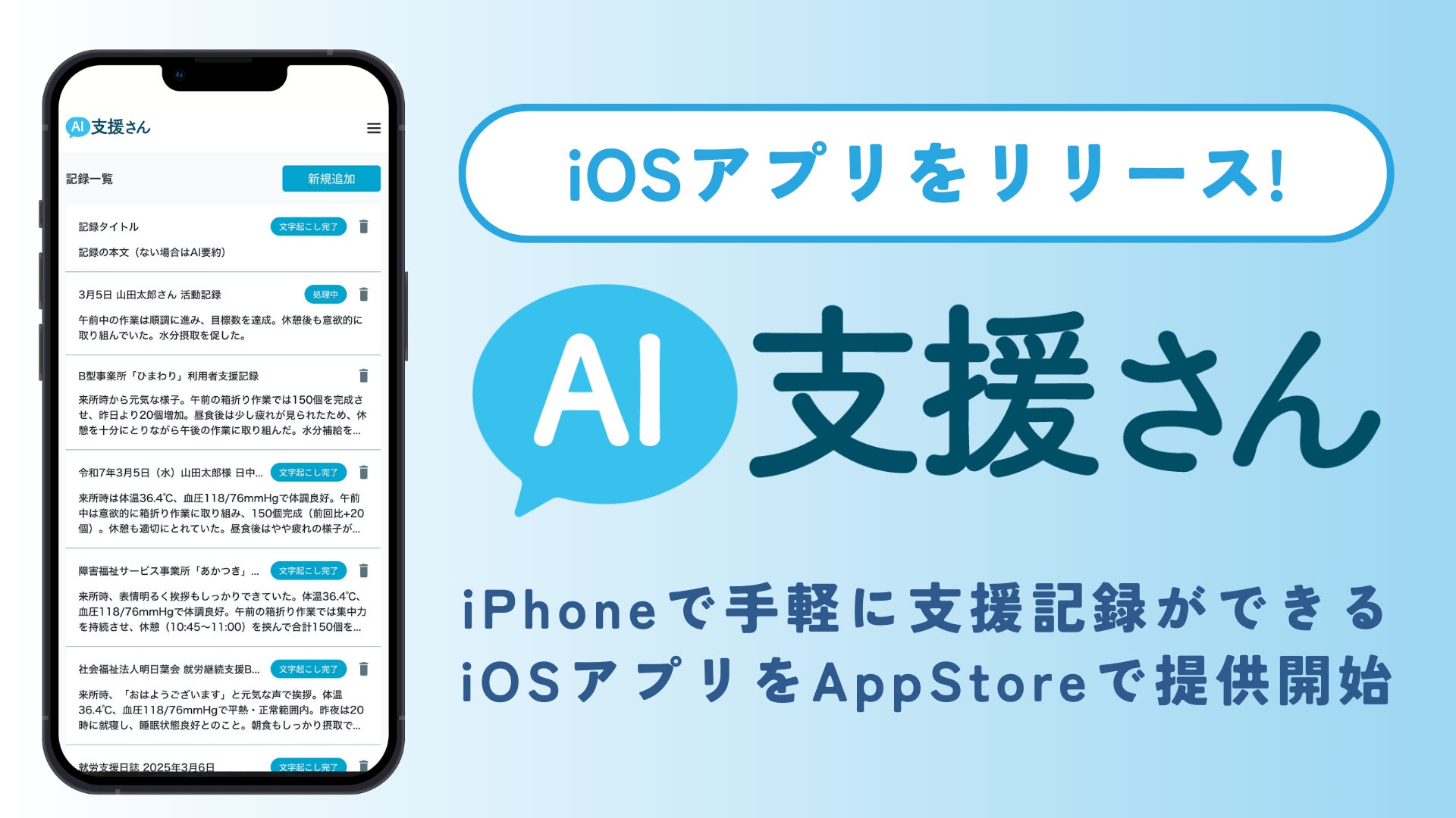「AI支援さん」は、支援現場に特化したDXアプリで、最新のiOSアプリとしてリリースされました。