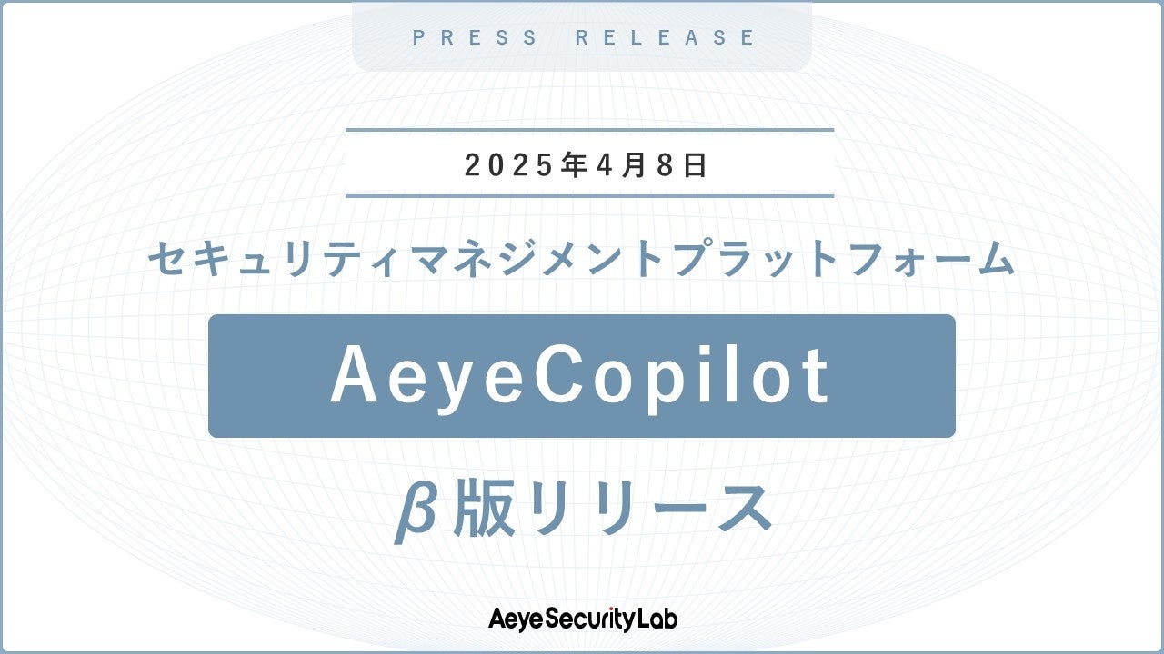 株式会社エーアイセキュリティラボは、脆弱性診断を統合的に管理できるセキュリティマネジメントプラットフォーム「AeyeCopilot」のβ版を2024年4月8日(火)から提供開始することを発表しました。