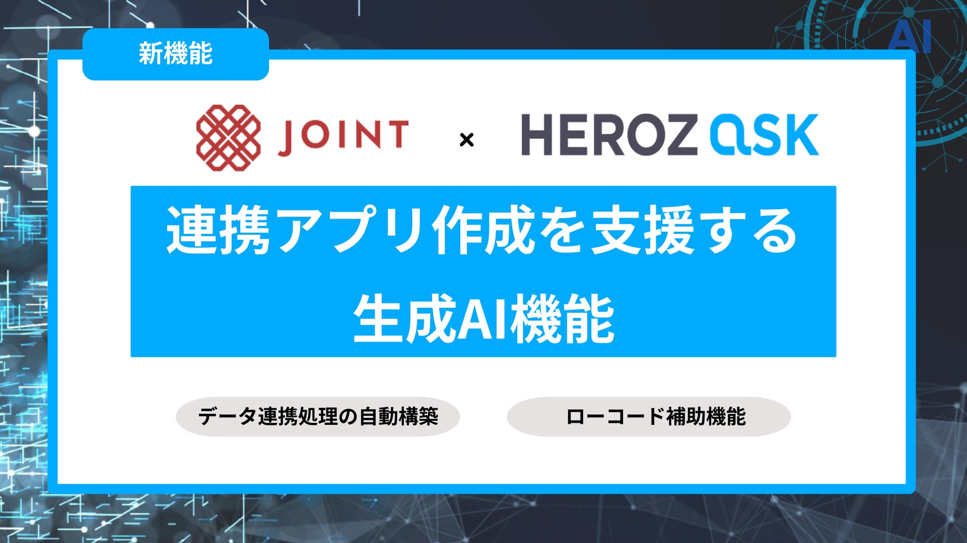 HEROZは、自社で開発した生成AI SaaS「HEROZ ASK」を、ストラテジットの「JOINT iPaaS for SaaS/for Biz」に統合し、提供を開始しました。