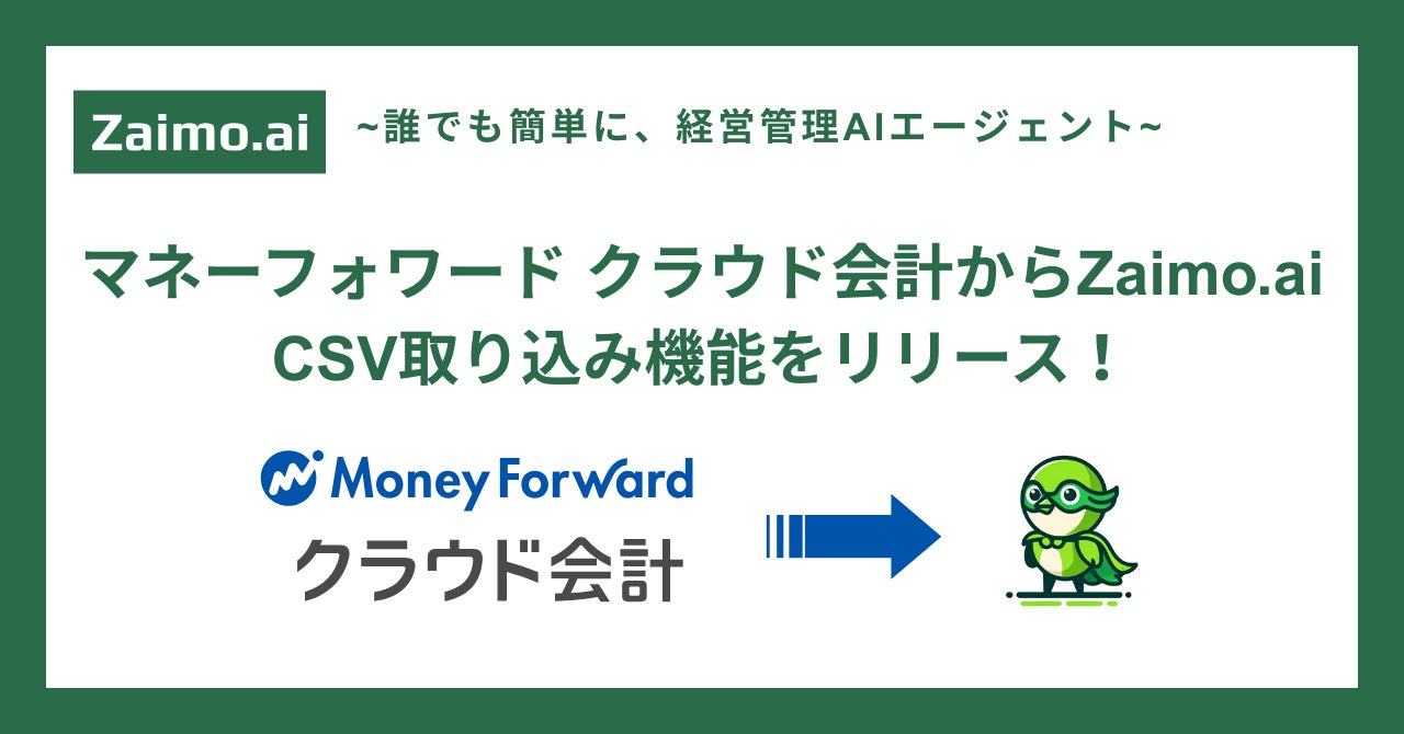 経営管理AIエージェント「Zaimo.ai」が、マネーフォワードのクラウド会計サービスからCSVデータを取り込む新機能をリリースしました。