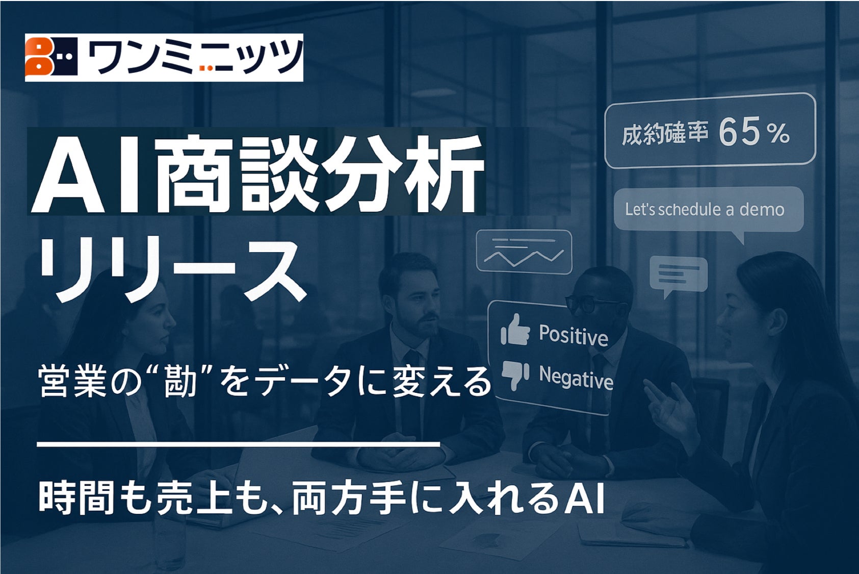 ワンミニッツは、営業の「勘」をデータに変える新機能として「AI商談分析機能」をリリースしました。