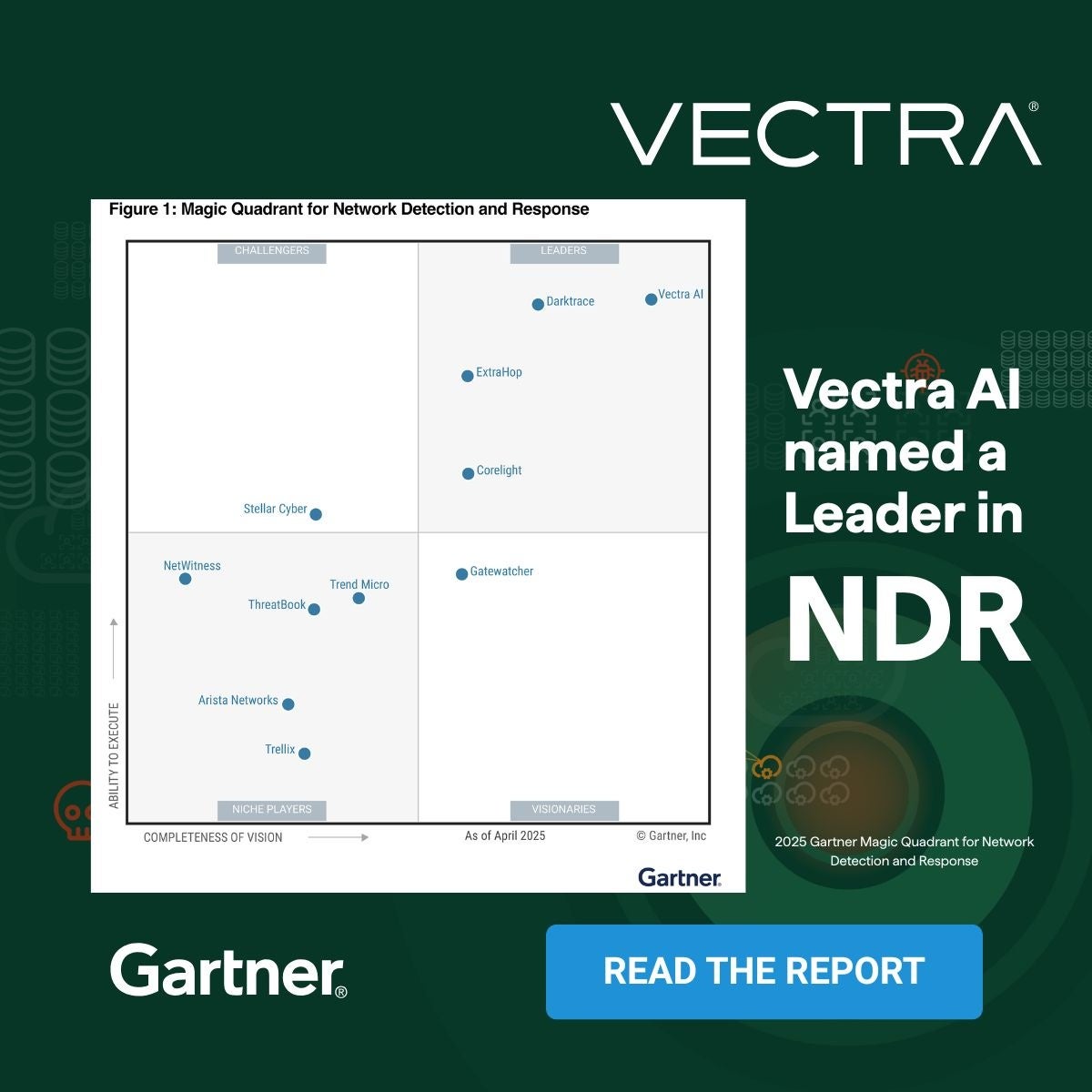 Vectra AIは、ガートナーが発表した初のネットワーク検知とレスポンス(NDR)のマジック・クアドラントにおいて、リーダーの一社として位置付けられました。