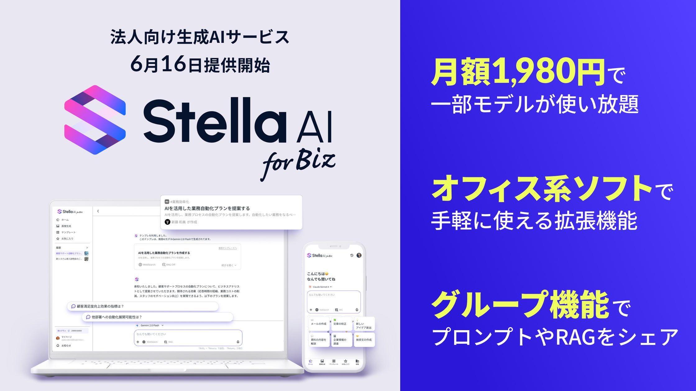 法人向けの生成AIサービス「Stella AI for Biz」が新たに提供を開始しました。