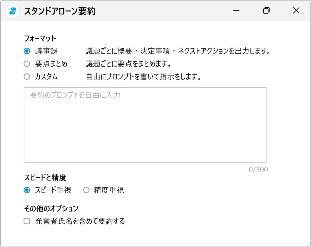 この機能により、ユーザーは音声データを文字に起こした後、その内容を効率的に要約することが可能になります。