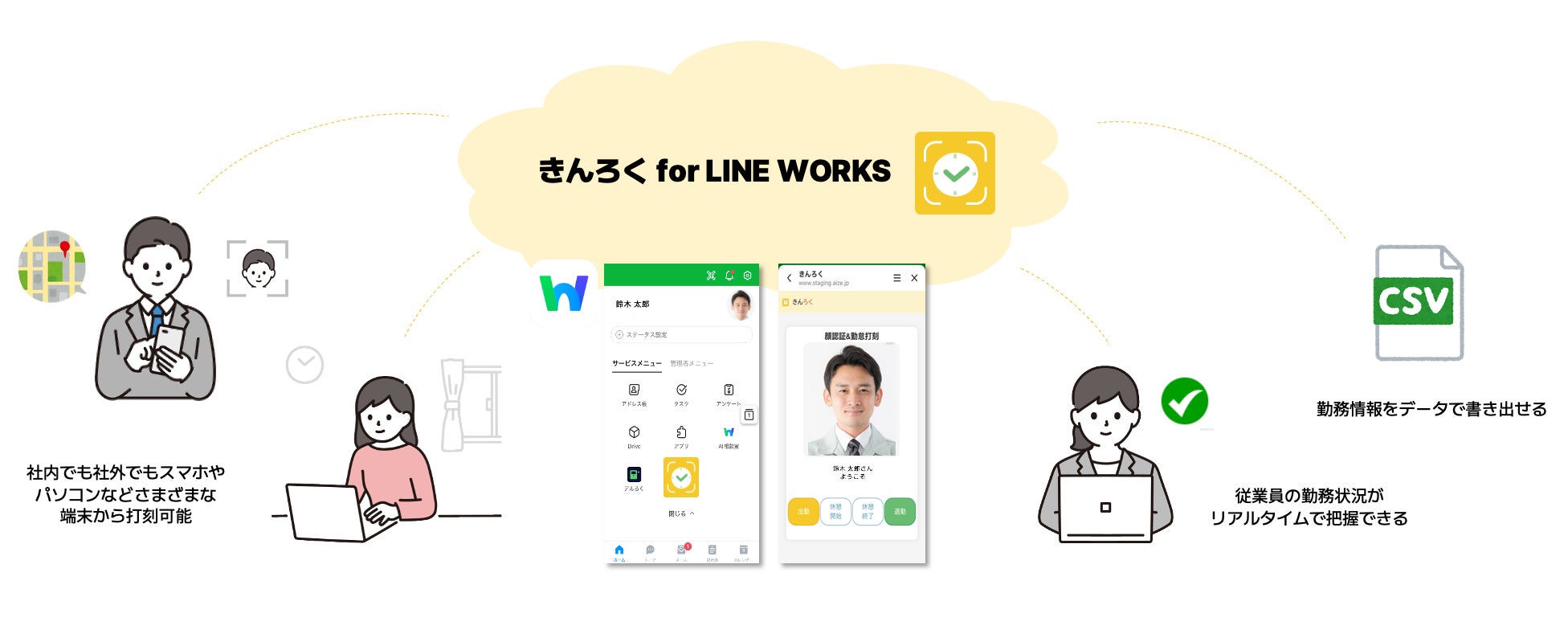 LINE WORKSは、AI顔認証機能を搭載したクラウド型勤怠打刻サービス「きんろく for LINE WORKS」との連携を開始しました。