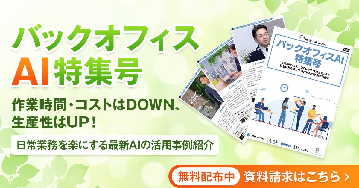 AIポータルメディア「AIsmiley」を運営する株式会社アイスマイリーが、バックオフィスでのAI活用のユースケースや製品の特長をまとめた特集号を公開しました。