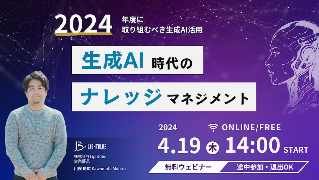 東京大学発のAIスタートアップ、株式会社Lightblueが4月19日に無料ウェビナー「生成AI時代のナレッジマネジメント」を開催する。