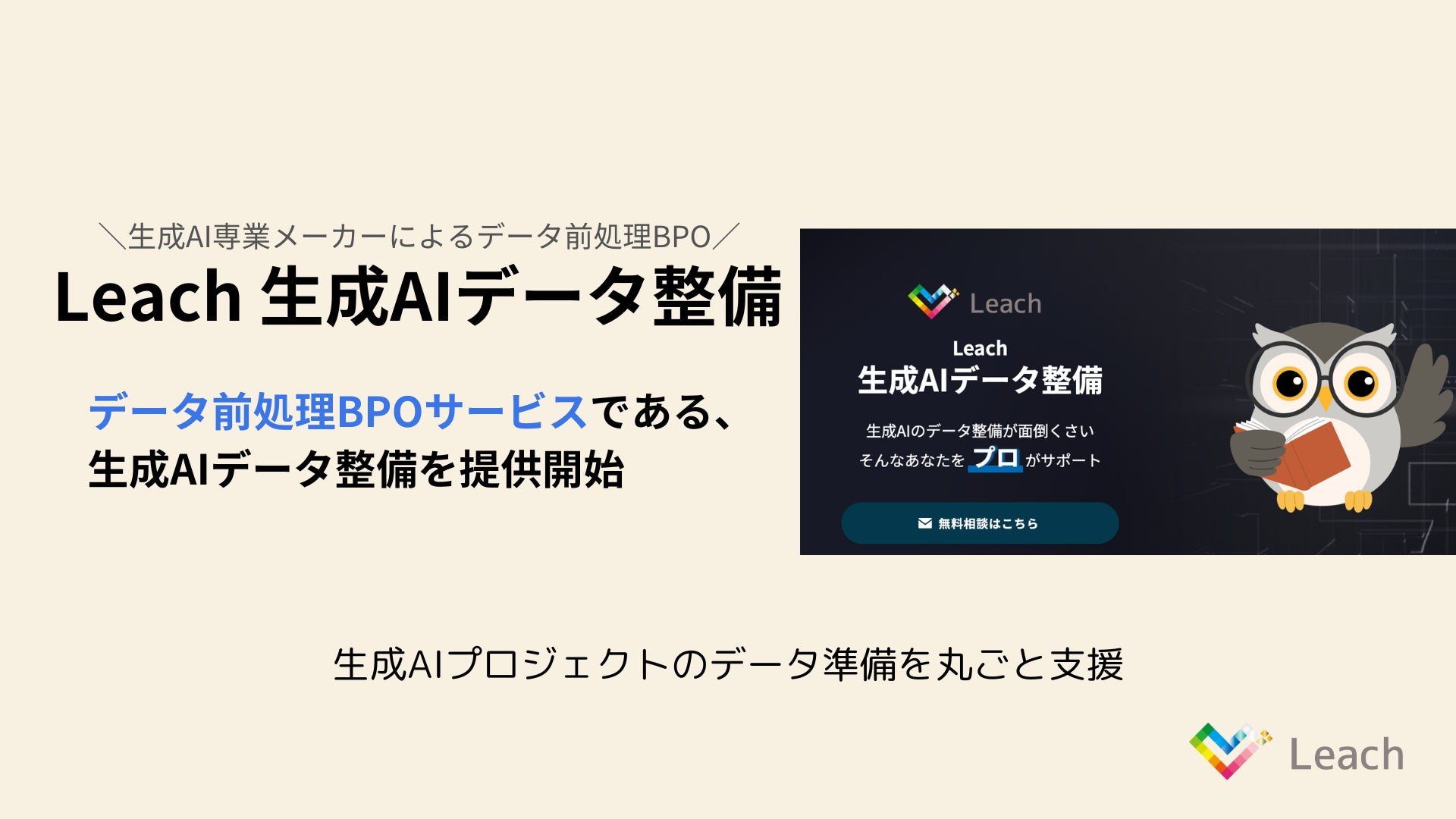 Leachは、生成AIに関連するデータ整備のビジネスプロセスアウトソーシング(BPO)サービスを開始しました。