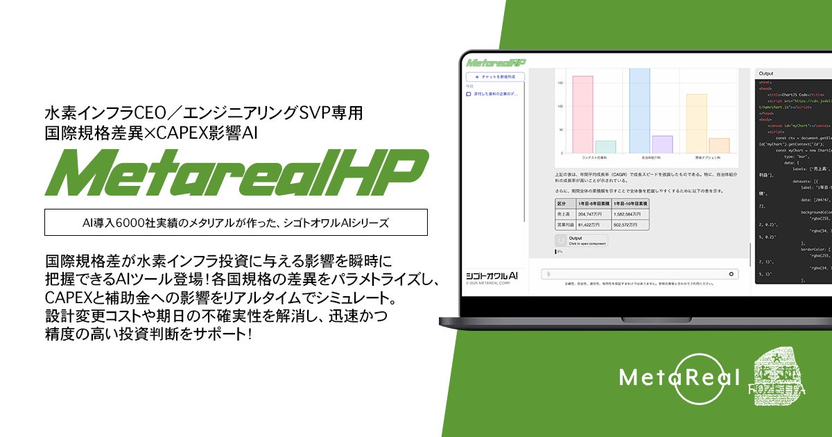 メタリアル・グループは、国際規格の差異に基づくCAPEX(資本的支出)への影響を分析するAIエージェント「Metareal ハイドロパイパー(Metareal HP)」を8月19日に提供開始しました。
