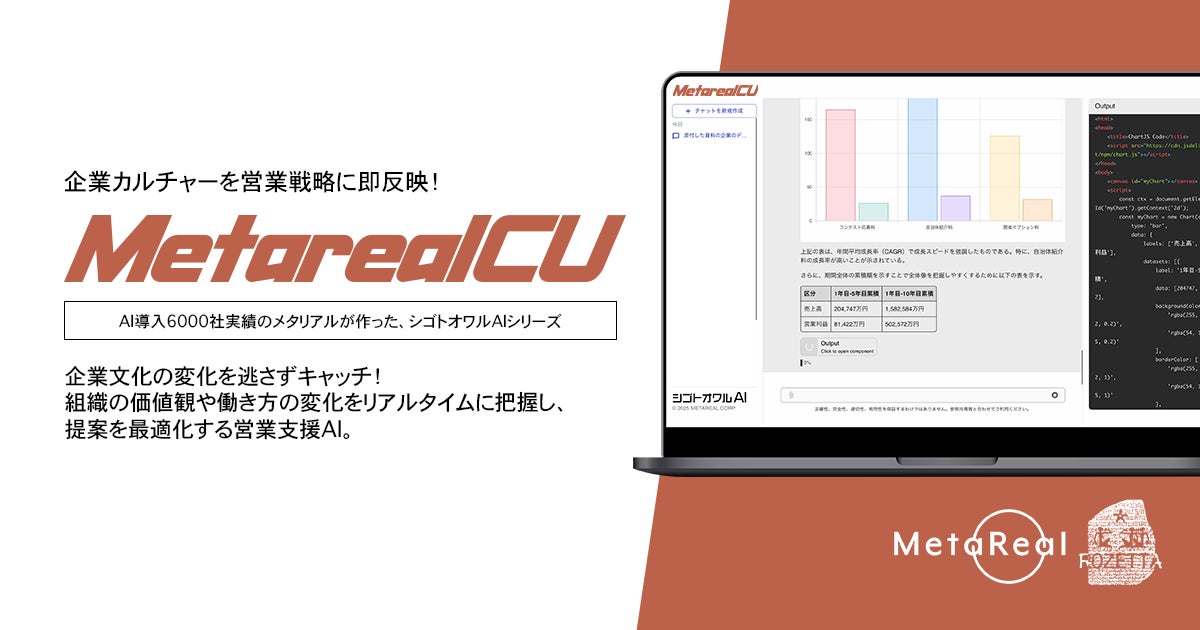メタリアル・グループは、法人顧客向けに企業カルチャーの変化を分析するAIエージェント「Metareal カルチャーインサイト (Metareal CU)」を2023年9月2日に提供開始しました。