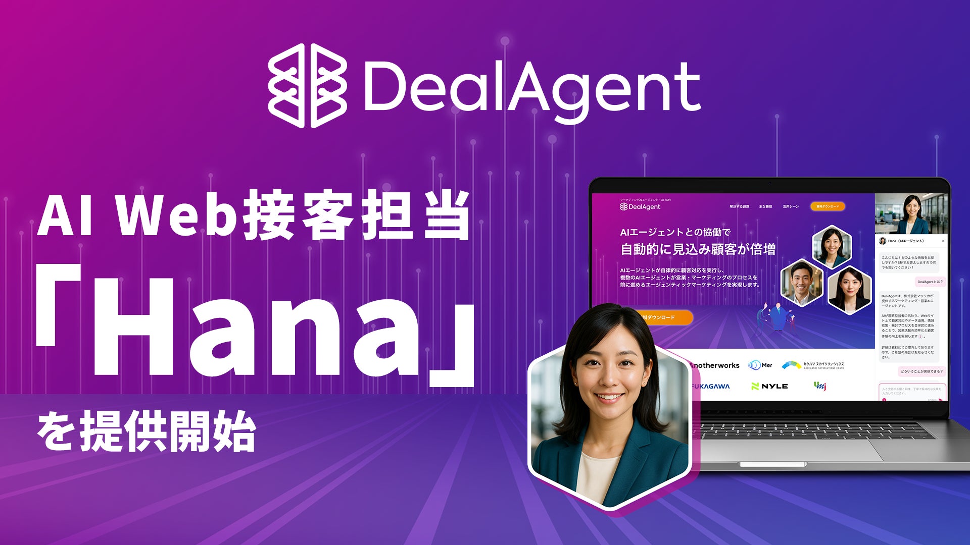 ディールエージェントは、新しいAI Web接客担当「Hana」の提供を開始しました。