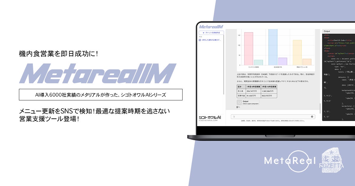 「Metareal インフライトミール(Metareal IM)」は、100営業日連続でのリリース達成を記念して、通算101個目のAIエージェントとして9月17日に提供が開始されました。
