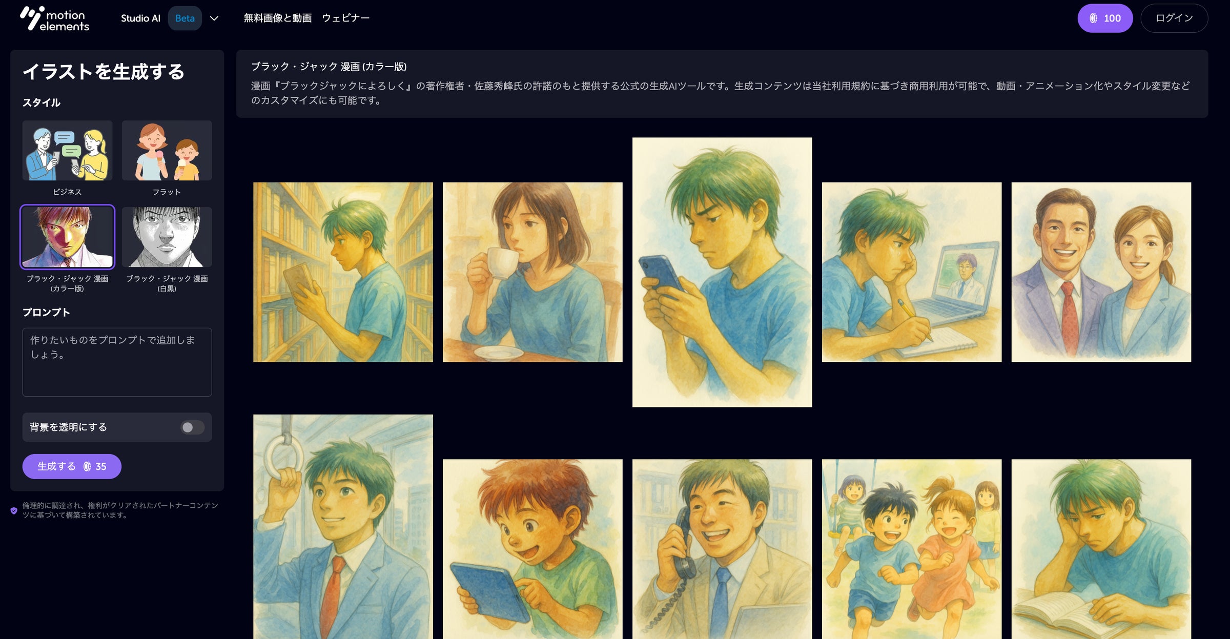 『ブラックジャックによろしく』の公式AIイラスト・動画生成ツールが公開されました。